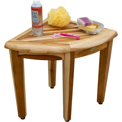 SnazzyCorner 16in Wide Teak Shower Bench or Stool. With dimensions of 16 inches in length for the sides, and a face of 22 inches across, it has a height of 18 inches. Sustainably sourced, as a family owned company, we have manufactured our teak products from certified legal teak from the island of Java in Indonesia for over 10 years. The inherent allure of this natural teak finish, makes it perfect inside or outside of your home.