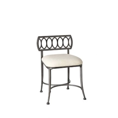 The Hillsdale Furniture Canal Street Vanity Stool blends art deco design with uptown style. Finished in White with Cream polyester and linen blend upholstery. This vanity seat can jazz up your bathroom or bedroom, perfect for those last minute makeup and hair touch ups in the mirror minutes before you are out the door. Recommended cleaning: spot or wipe clean. Some assembly required.