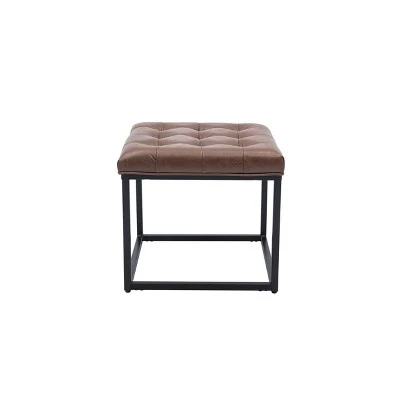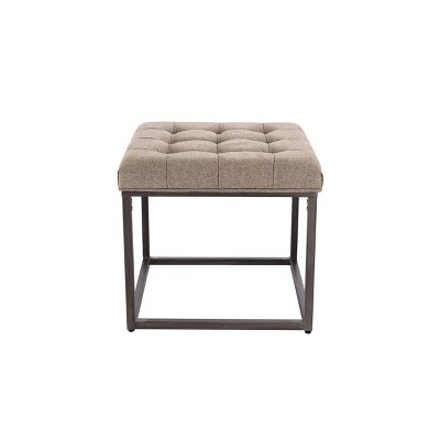 Bring current and classic style to any room with this industrial metal base ottoman with button tufting upholstered top. This 28″ square ottoman will be a conversation piece and an ideal seating or décor solution in your living room, entryway, or bedroom. Try two together to make a more impactful statement. Designed to work with a range of existing interior styles and an easy way to give any room an update at a good value.