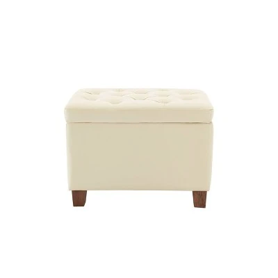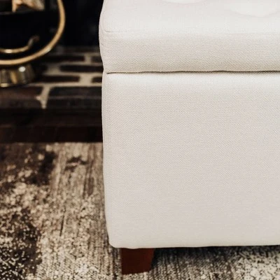 This classic large 24″ rectangle storage ottoman with a hinged lid will have lasting function and be a timeless style addition to your home. Designed to be an easy storage solution in your bedroom, living room, or entryway – use for storing blankets, shoes, pillows, or remotes. Offered in classic fabrics that will be an easy compliment to any interior style. Easy to care for and maintain.