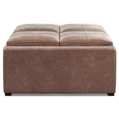 Having purchased your new Sofa and Love Seat, you are looking for a larger square furniture piece to use as a Coffee Table. You want it to be fully functional with plenty of storage. The Franklin Large Square Coffee Table Storage Ottoman is made from durable linen look fabric and is the answer to all your needs. This attractive ottoman is extra strong and durable and features a beautiful stitched exterior and large storage interior. It has four flip over trays for easy entertaining, or eating beside the TV and has an extra large storage compartment to hide away all of your clutter. Whether you are using it as an eating surface, a storage unit or just to put your feet up, the Franklin Coffee Table Ottoman is a great and functional piece of furniture. This ottoman is available in Brown, black, Red and cream PU plus Brown and gray linen look fabric.Efforts are made to reproduce accurate colors, variations in color may occur due to computer monitor and photography.