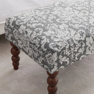 Decorate the entryway or add style to your room with the Claire 40″ Bench – Linon. Made from durable wood with padded seating and cheerful, printed upholstery, this seating bench comes with carved wooden legs and low-seat design. It offers both, style and comfort. Used as a convenient spot by the front door or added to your living room as extra seating space, the printed wooden bench makes a comfy addition to your aesthetic.