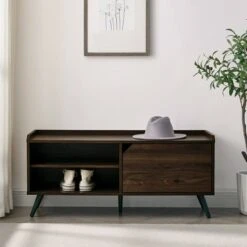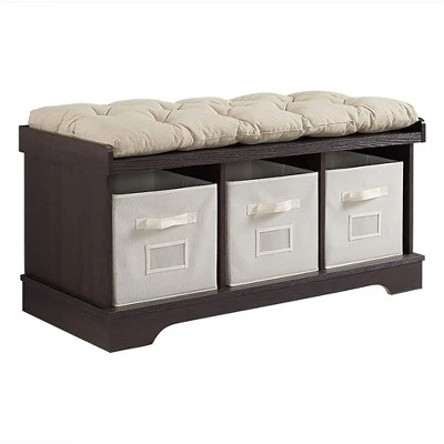 Whether you’re looking for utility, comfort, or style this storage bench from Saracina Home has it all. Three simple storage bins, that can have labels inserted in them, are underneath the bench to easily store your fabulous scarves, cozy throw blankets, or the celebrity magazines you secretly buy at the supermarket. This bench includes a tufted cotton cushion, adding comfortable seating to your space. Works well in a variety of rooms ranging from your entry way to your bedroom, as well as a wide breadth of styles such as traditional or modern farmhouse.