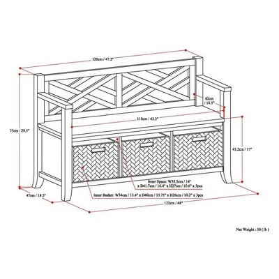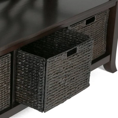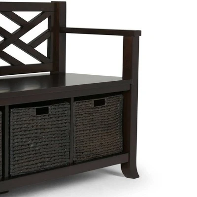 47" Nolan Solid Wood Storage Bench with Basket Storage Espresso Brown – WyndenHall