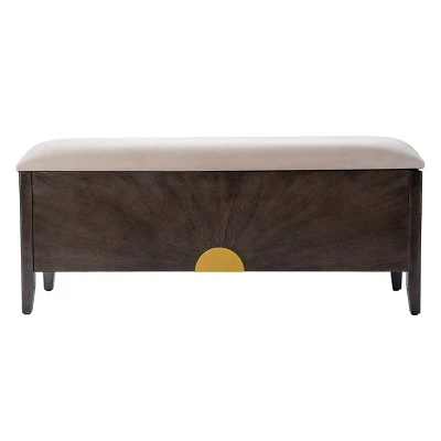 Create convenient storage in your small space with the Aiden Lane Latheg 48.25″ Storage Bench. A unique sunburst pattern decorates the frame, while an upholstered seat opens to reveal a spacious hidden storage compartment. Built with functionality in mind, this modern bench works alongside your dining table or in your small space entryway. Upgrade your living room or hallway design when you bring home this contemporary bench with storage.