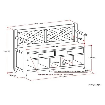 - Dimensions (Overall): 29.5 Inches (H) x 47.25 Inches (W) x 17.0 Inches (D)
