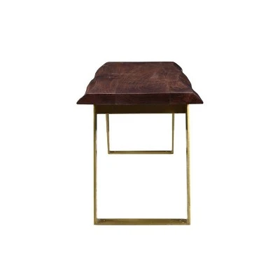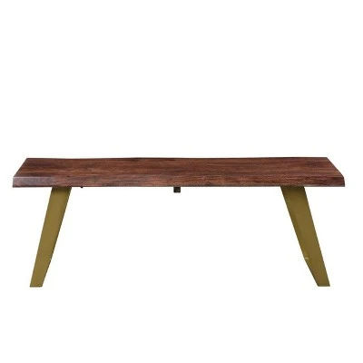 This bench, made of solid slabs of Seesham wood and complemented by modern iron legs, has a versatile design. The table is full of one-of-a-kind markings, giving each dining table a ton of personality. Every natural knot, crack and distinction is carefully preserved and praised. Looks great paired with our live edge dining table. Set includes: Materials: Seesham wood, Iron Finish: Industrial, Rustic Worldstock Country: India Furniture Room: Dining Room Material: Wrought Iron, Wood Bench Type: Entryway, Standard Benches, Dining Bench Assembly: Assembly Required Exact Color: Natural Color: Natural Dimensions: Small :18H x 50L x 16W Medium: 18H x 60L x 16W