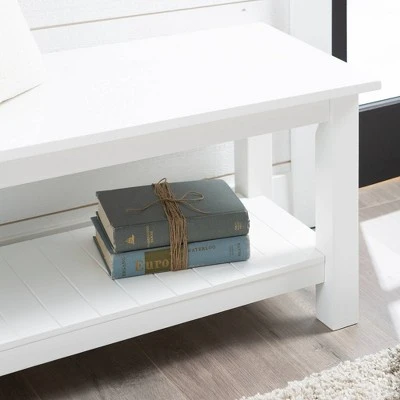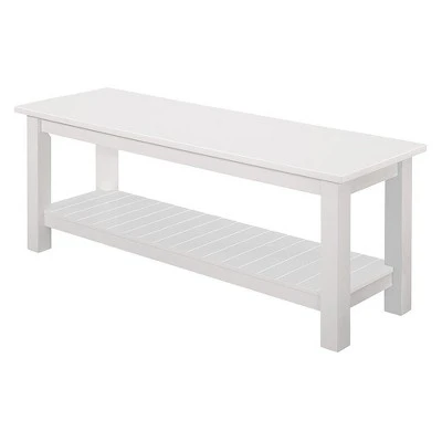Accent your mudroom, entryway or hallway with the Country Style Entry Bench with Slatted Shelf from Saracina Home. The bench provides an attractive, clean-looking seating and storage solution that can also be used as a table. Outfit it with throw pillows for more comfortable seating or use it to hold keys, purses and backpacks, books or shoes. The slatted bottom shelf is just the spot to conveniently keep your belongings out of the way. This sturdy bench requires little care — just wipe clean with a dry cloth when needed.
