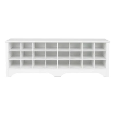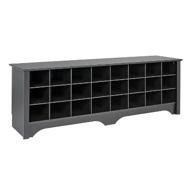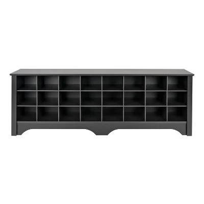 Store your shoes where you put them on with our Shoe Storage Cubbie Bench. Dual-purposed and versatile, this bench is a great addition to your foyer, mudroom, utility room or bedroom. Each of the 24 individual cubbies is spacious enough to hold a pair of size 13 men’s shoes, keeping them neatly stored and out of the way. It’s the perfect piece to keep your shoes organized.
