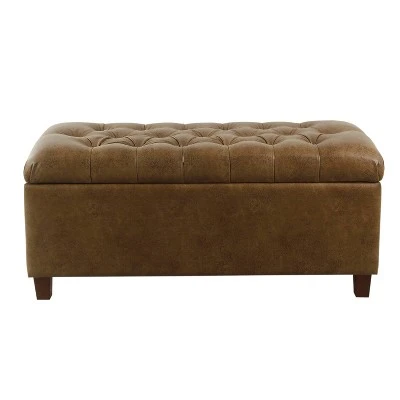 Sophisticated yet practical, the Ainsley tufted storage bench provides a variety of home décor and storage options. Use it as a coffee table ottoman in a living room to serve guests. Put it in a family room to prop feet up after a long day. Or, place it as an end of bed bench to store pillows and blankets when not in use. with solid wood legs, faux leather, and a hinged lid for easy access, the Ainsley storage bench is a premium addition for any home. Easy to assemble and maintain
