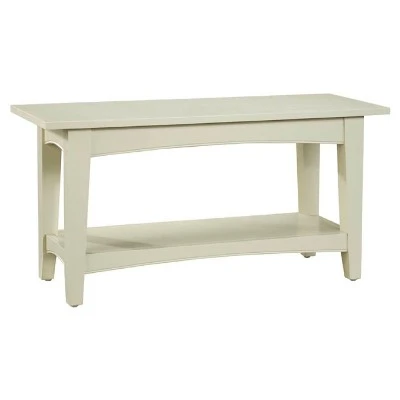 Our Cottage Bench with Shelf by Alaterre Furniture is a versatile addition to any room and space. This bench can be used as a coffee table, in the mudroom as a bench for shoes or in any lifestyle setting. This unit is easy to assemble and sturdy. It includes a lower shelf for storage.