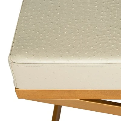 The gracious style of this modern bench makes a tasteful statement in any room. Its contemporary creme palette is paired with the modern metallic polish of gold. Ideal for a tray of tea and cakes or as extra seating while after dinner drinks are served. Care Instructions: To prevent overall soiling, frequent vacuuming or light brushing is recommended. Cushions and pillows should be turned on a weekly basis. Down filled cushions should be brushed rather than vacuumed. Spot clean, using a mild water free solvent or dry cleaning product. Only a professional cleaner should undertake a complete overall cleaning. The use of steam or water based cleaners may cause excessive shrinking or staining.