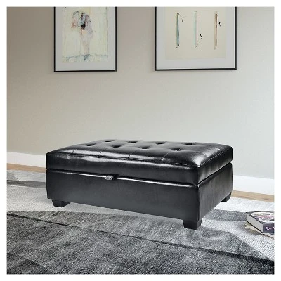 Enjoy this decorative multi-functional ottoman from CorLiving. Upholstered in bonded leather this ottoman is easy to wipe clean with a damp cloth providing a practical solution for many areas in your home. Features a comfortable foam padded top surface finished with top stitched edge seams and stylish tufting. This coffee table/ottoman opens for plenty of additional storage space. A great accent piece in any living space.