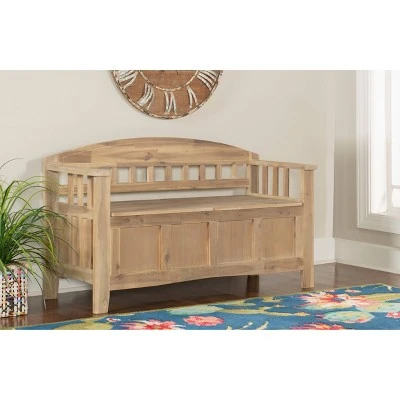 Update your home with a rustic look with the Aria Storage Bench. Perfect for adding to an entryway, hall or mud room, the bench features a split seat design. Storage beneath the seat is ideal for keeping coats, shoes and bags hidden. The natural washed finish allows the piece to blend seamlessly into any home.