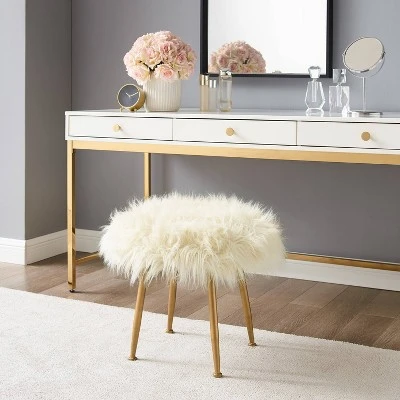 The versatility of the Arlo Fur Stool makes it an easy home addition. Perfect for adding fun style to your space or kicking up your feet, the ottoman is both sturdy and durable. The pale gold metal legs are accented by the faux fur upholstered top.