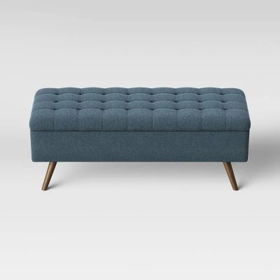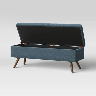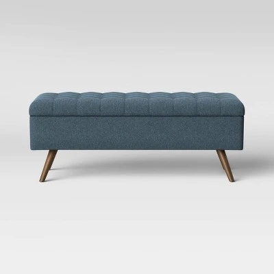 Give your living space style as well as function with this Arthur Tufted Storage Bench from Project 62™. This upholstered accent piece features a wood-like frame held by four elegant, slanted legs, adding a sense of depth, dimension and texture to your space, while an interior storage unit offers ample space to keep your home organized. The tufted bench can act as both a spot to sit and a decorative accent piece. Perfect for storing extra blankets, board games and more, this cushioned bench easily brings a modern accent to your entryway, living room and more.