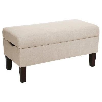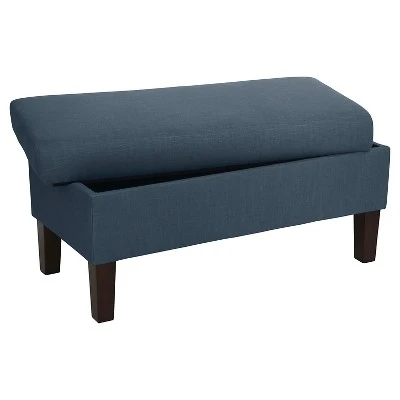 At your service. This storage bench from Skyline Furniture plays a variety of roles in the home – from comfortable extra seating for guests to chic storage chest that lets you stow it all in style. Beautifully designed with an easy-lift cushion, hand-finished in your choice of soft, premium upholstery.