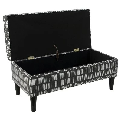 Whether you fill it with extra towels, spare blankets, your movie collection or the family’s board games, this Billie Storage Bench from Skyline Furniture is your stylish storage solution. The pattern of white lines looks hand-drawn for a touch of whimsy, while the black fabric and legs are modern and sophisticated. This black storage bench will be at home in any area of your living space.
