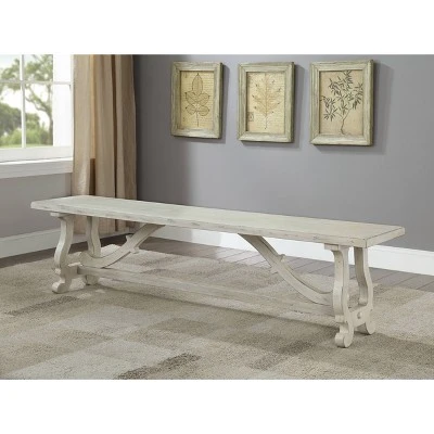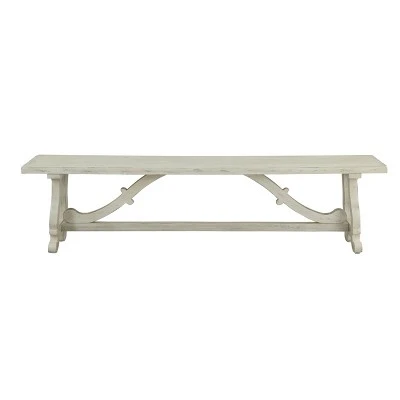 Stylishly constructed with cut out curved legs and crossbars, our plank top Dining Bench in fresh Orchard White Rub is the perfect companion piece for the matching Dining Table, offering optimum seating when friends and family drop by. Or use in your Entry, Kitchen or Sunroom, where the graceful curves and fresh color will add a bright and cheerful vibrancy.