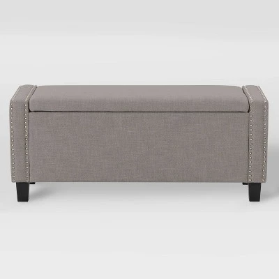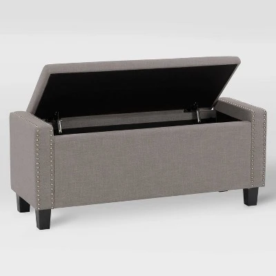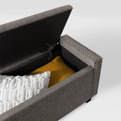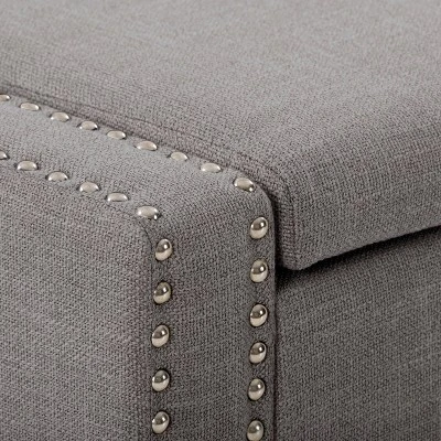 - Features: Padded Seat, Nailhead Trim, Storage, Hinged Lid