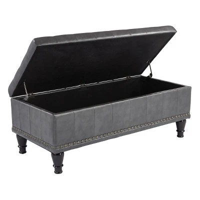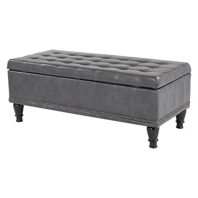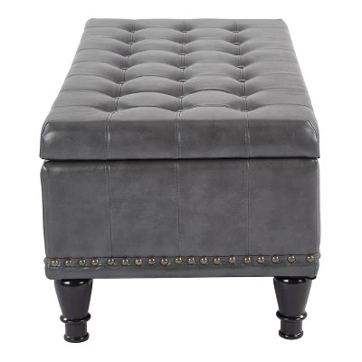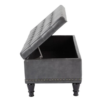 The Caldwell Storage Ottomon offers the look of luxury, a plush place to put up your feet and durable functionality – all in one. With handsome tufted upholstery in either Black or Crimson and classic nail head detailing, the Caldwell stands on rich “Espresso” solid wood legs. Soft close hinges provide easy access to spacious interior storage tucking away throws, books and other home essentials. Large enough to double as a coffee table or bedside ottoman , the Caldwell is a perfect companion to any living space.
