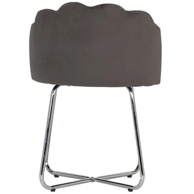 When it comes to turning heads, this scallop back vanity stool is a showstopper for any room. The beautiful dark gray velvet fabric is rich and luxurious, while the channel back adds style and comfort. The chrome finished metal legs create the perfect support with a crisscross base. The balance of sophistication and stunning design elements provide elegance to any vanity, bathroom or as an accent chair in any room. Assembly required.