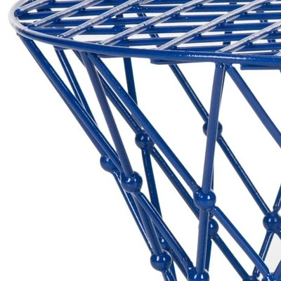An intricate iron web lends a modern art aura to the Charlotte Stool. Charlotteโs sculptural depth is enhanced with a dark blue finish that complements any contemporary interior with charisma and movement. The clean lines allow for an airy space with ventilation. The top of the stool has tightly wound wires to help carry the weight of any of the items stored on top. This is a great addition to any Mid- Century style room and perfect to a pop of color!