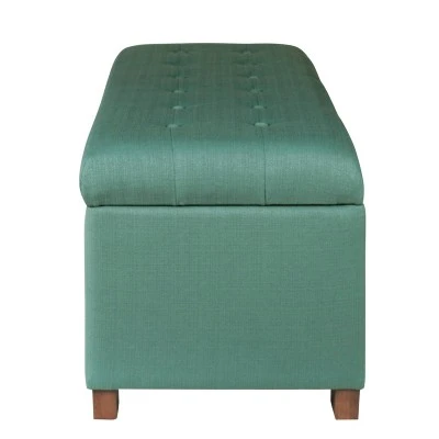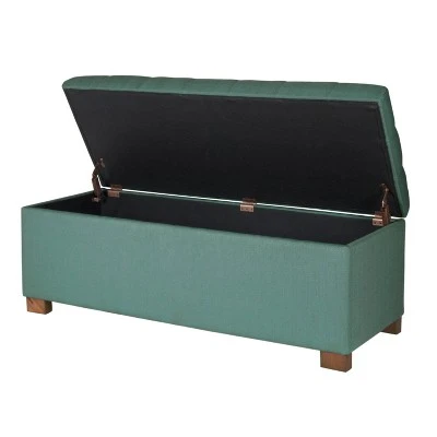 Add style and spacious storage to any room with this classic long storage bench. Featuring button tufting, this storage bench has wood legs. This multifunctional bench can provide seating and double as a coffee table, serve as an end of bed bench or as an entryway bench with storage. Premium details include a hinged lid and a generous storage capacity. Easy to assemble and maintain.