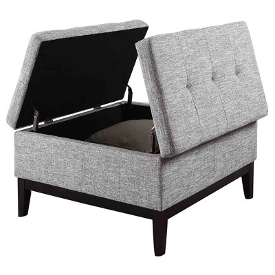 Tailored style, spacious seating, and hidden storage make this Beige Gray Dual Lift Storage Coffee Table your new favorite addition. Perfect in the living room, often make great coffee table substitutes, being a similar size and shape. Square ottomans often have a cubic appearance, singular colors, and may hide interior storage. Some common elements you’ll notice are tufted bulging around buttons most often, giving the cushion surface a welcoming, detailed appearance, revealing tray tables and open space. This square, button tufted coffee table features dual-hinged opening with interior storage over exposed espresso stained wooden legs. This large rectangular ottoman reveals its nature as a coffee table more obviously than others, with table-like wood legs and lower open shelf.