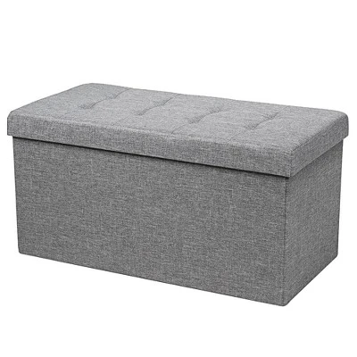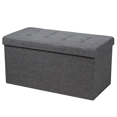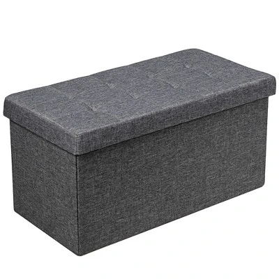 Combining elegant appearance and practical functions, our foldable storage ottoman will be your ideal choice!. The overall frame is constructed of high-quality MDF, which ensures a high load bearing capacity without easy deformation. Besides, the soft fabric covering and thick padded seat provide a great sitting experience. Roomy interior storage space with a hanging box can meet the needs of storing clothes, blankets, shoes and other daily necessities. Equipped with detailed instructions, the storage ottoman can be assembled quickly. And it can also be easily folded when not in use which takes little space. . Specification: Color: Grey Dark Grey. Material: Oxford Fabric + MDF + Sponge. Overall Dimension: 31.5” x 16” x 16” (L x W x H) . Inner Dimension: 30.5” x 14.5” x 14” (L x W x H) . Dimension of Hanging Box: 14” x 8” x 4” (L x W x H) . Weight Capacity: 350 lbs. Net Weight: 15 lbs. Package includes: . 1 x Foldable Storage Bench. 1 x Instruction.