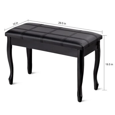 This is our high quality and stylish piano bench which offers a comfortable place for you to practice the piano. Constructed with sturdy solid wood, the piano bench can support two persons safely. Covered with PU leather and padded with high-resilience sponge, you will feel more enjoyable and relaxed. Equipped with a big storage compartment under the seat that provides specious space for holding sheet music and books. What’s more, it has anti-slip feet pads under wood legs, protecting your floor from being scratched. Don’t hesitate to buy one! Specification: Color: Black. Material: PU leather and solid wood. Overall size: 29.5”x14”x19.5” (LxWxH). Weight capacity: about 360lbs. Net weight: about 14 lbs. Package includes:. 1xPiano Bench.