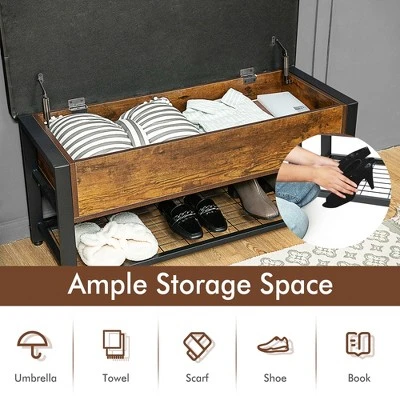 - 3-in-1 Storage Bench: Our storage bench is equipped with a steel shelf, a bench and storage, which meets all your daily needs. It not only provides you with a place to sit down, but also offers extra storage space to put different items, such as clothes, socks, scarves, umbrellas, books, etc.
