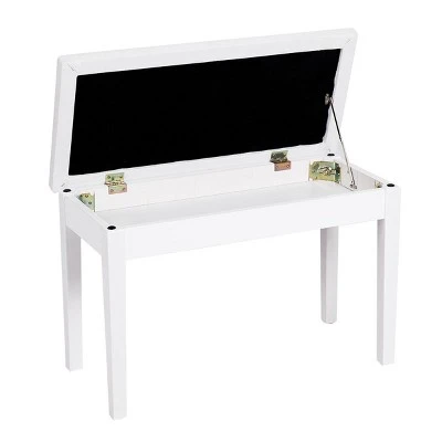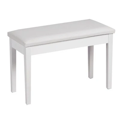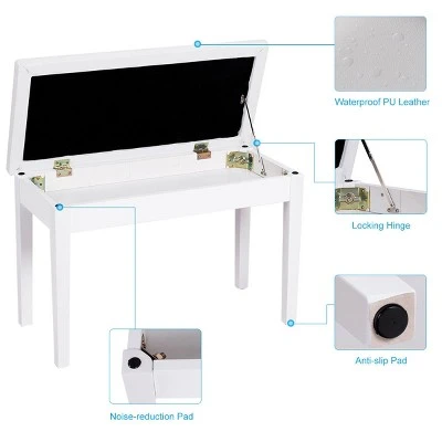 Costway Solid Wood PU Leather Piano Bench Padded Double Duet Keyboard Seat Storage White