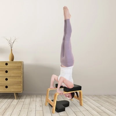 Our yoga inversion bench will be your best solution to perform a headstand with safety and ease! The bench consists of a sturdy wood frame and soft PU cushion padded with high-density sponge, providing firm support and gentle comfort for you to get upside down easily. And the T-shaped pad is removable. It can be used to protect your head or serve as a yoga block. Therefore, this yoga prop can not only help you to do upside down, but also assist with other yoga postures and get your full body exercised. More importantly, insisting on using this yoga bench to exercise can help you relieve fatigue, enhance core strength and maintain a fine figure. Therefore, let’s get started from now on! . Specification: Color: Black. Material: Beech Wood, Birch Wood, PU. Overall Dimension: 24” x 15” x 15.5” . Pad Size: 19” x 16.5” x 3” . Net Weight: 11 lbs. Weight Capacity: 440 lbs. Package Includes: . 1 x Yoga Headstand Bench. 1 x User’s Manual.