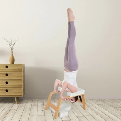 Our yoga inversion bench will be your best solution to perform a headstand with safety and ease! The bench consists of a sturdy wood frame and soft PU cushion padded with high-density sponge, providing firm support and gentle comfort for you to get upside down easily. And the T-shaped pad is removable. It can be used to protect your head or serve as a yoga block. Therefore, this yoga prop can not only help you to do upside down, but also assist with other yoga postures and get your full body exercised. More importantly, insisting on using this yoga bench to exercise can help you relieve fatigue, enhance core strength and maintain a fine figure. Therefore, let’s get started from now on! . Specification: Color: White. Material: Beech Wood, Birch Wood, PU. Overall Dimension: 24” x 15” x 15.5” . Pad Size: 19” x 16.5” x 3” . Net Weight: 11 lbs. Weight Capacity: 440 lbs. Package Includes: . 1 x Yoga Headstand Bench. 1 x User’s Manual.