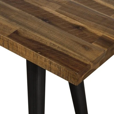 The Armen Living Cusco Acacia Rustic Bench is a multifunctional piece; and easily fits into your dining room, living room or at the end of your bed. The bench is 55 inches wide and features a beautiful antique acacia finish. The metal legs give this bench a modern touch without compromising its warm rustic aesthetic. The Cusco collection expands to multiple rooms in your home. Coordinating bedroom, living room and dining room pieces not included. All available in an antique acacia finish with black metal accents.