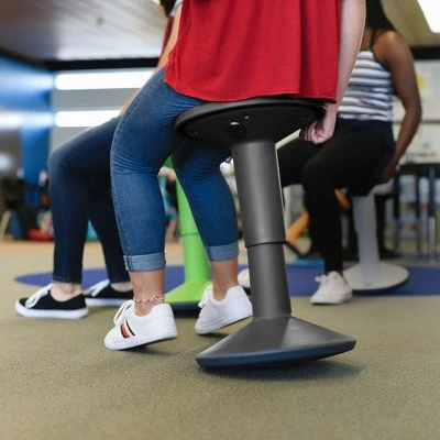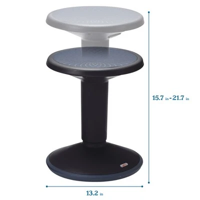 The SitWell Adjustable Stool provides a flexible seating option for the classroom, library, office, or home learning environment. Active seating supports the body’s natural need for movement. Seats that rock, swivel, and tilt encourage good posture, core strength, and alertness. Constant small movements increase blood flow to the body and brain aiding concentration. Ideal for children and adults who have restlessness, ADHD, ASD, or sensory sensitivities; dynamic seating can help sustain attention and focus by creating an outlet for fidgeting and wiggles. Featuring a rubberized textured seat and a convex base lets you rock 360° and helps keep you upright. Seat height adjusts from 15.7″ to 21.7″ with the push of a button; it requires a minimum 105 lbs. to adjust the seat down. Rated GREENGUARD [GOLD] Certified for healthier indoor air, CPSIA lead and phthalate compliant, safety tested and meets or exceeds ANSI/BIFMA Standards for Educational Seating. At ECR4Kids, we’re committed to safety, testing and regulatory compliance to ensure our products meet or exceed industry standards. You and your kids deserve the absolute best for a brighter way to play, share, learn and grow. | 12.8″W x 15.7″H | 21.7″H | SitWell Adjustable Stool | Sitwell Adjustable Stool | Rubberized Seat | Comes fully assembled | Freedom to Move | 11⁰ of rocking motion | Adjustable Height | Easily adjust height with a push of a button | Always keep feet on ground to help maintain balance | Helps promote proper posture + strengthens core | Non-Slip, convex base keeps you upright |