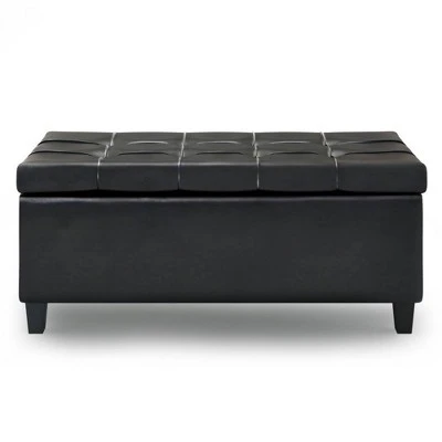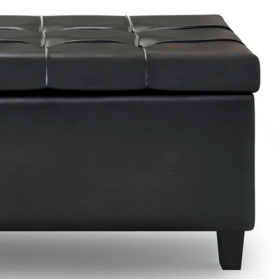 Maximize the space in your living room or family room with the Elliot Lift Top Storage Ottoman. The traditional, yet functional design of the ottoman makes it a necessity for any home. The ottoman features a tufted top that lifts up and out – perfect for using your laptop, tablet or dining. The large interior space is the perfect solution for your storage needs.