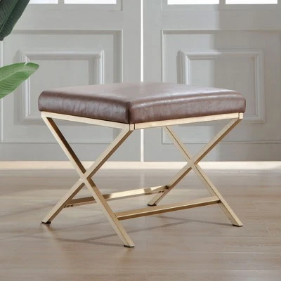 Add glamour to your home with this modern square ottoman with a metal base. Supported by unique, metal base this striking stool makes a modern statement in any space. Each ottoman measures 20″ square, stands 18″ tall and can support up to 225 pounds. Use as a footrest in a bedroom, makeup stool in a powder room, or an accent piece in a living room.