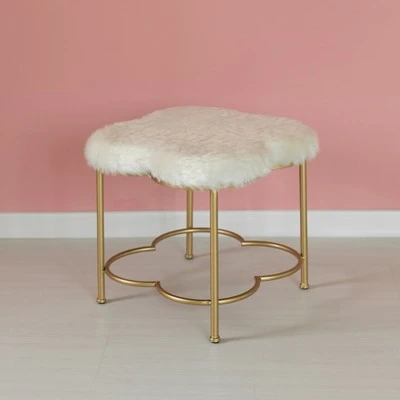 - Product Name: Fabulaxe Cloud Shaped White Fur Gold Vanity Stool