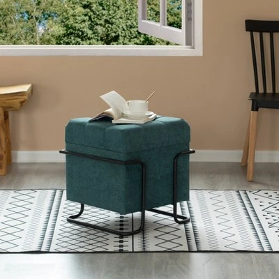 Home entrances and living rooms need practical and decorative furniture to make home feel more inviting. This storage ottoman invites decorative charm and practical functions wherever placed. This squared shape bench serves as a seat, storage holder, and ottoman. Thick fabric on a sturdy metal frame makes it durable to use. Top seat opens up to reveal large interior area to store living room or bedroom items and soft cushion top makes it comfortable to use as a seat. This storage ottoman is what makes rooms look complete!
