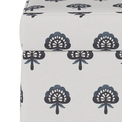 Eye-catching design and functional flair come together in the Clara Navy Block Fairland Storage Ottoman from Threshold™. This ottoman comes in a simple square shape that makes it easy to incorporate into an array of spaces in your home, looking just as good tucked neatly into a corner as resting against the foot of the bed. The white ottoman pops with an allover pattern of navy fan-like designs for a charming look that will perfectly complement both neutral and more boldly colored furniture and throw pillows. The top of the ottoman lifts off to provide you space to stow away spare blankets, media accessories or anything else you want close at hand but out of sight. Able to hold up to 250 pounds, this ottoman can also be sat upon when extra seating is needed.