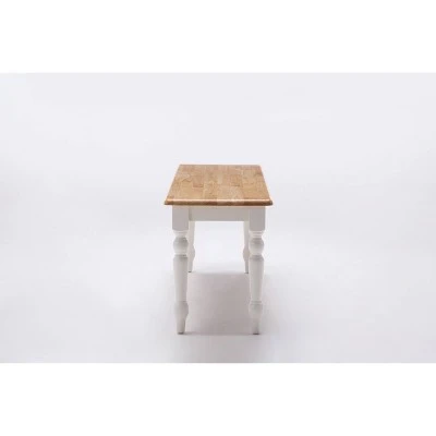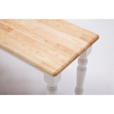 Bring a homey feel to dinners with the family by swapping out a few dining chairs for the Farmhouse Dining Bench. The two-toned finish features a glossy natural wood seat and cottage white legs. The bench’s full apron and turned legs round out the design beautifully. Just as important as the eye-catching design is the bench’s durable hardwood construction, which promises that this piece is built to last. It’s not just for the dining room either! You can also place this bench in an entryway, near a window, or at the foot of your bed to create a cozy nook. This bench is super easy to clean: just run a dry cloth across it to catch any gathered dust.