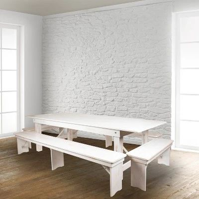 Flash Furniture HERCULES Series 8′ x 12” Solid Pine Folding Farm Bench with 3 Legs