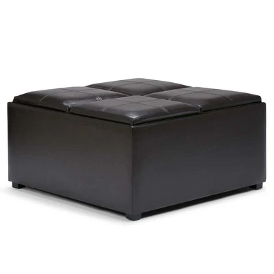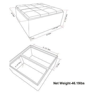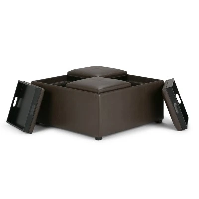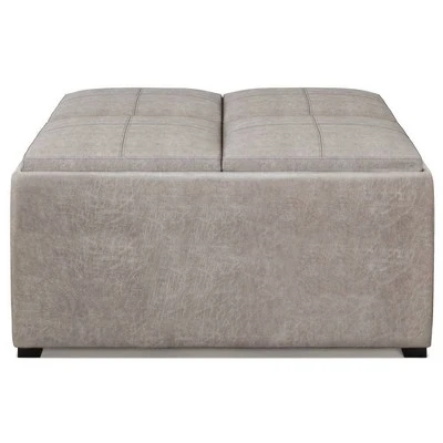 - 35 in. square Coffee Table Ottoman features four flip over serving trays