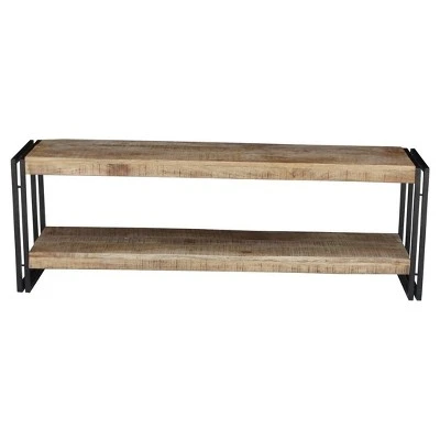 Create functional seating in your home without sacrificing great style with this Handcrafted Reclaimed Wood and Metal Entryway Bench with Shelf from Timbergirl. This incredibly sturdy and durable wood bench has a beautiful rustic finish that accentuates the natural grains and details of the wood. It has a black metal cut-out frames on the sides and a lower shelf that creates additional storage and decor space. With a simple and clean rectangular design that pairs seamlessly with a variety of different decor styles, you can use this rustic wood and metal bench in an entryway, living room or den space for a touch of functional style.