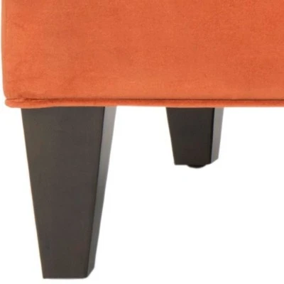 Low slung and sassy, the Harlow lounging bench by Safavieh is a fun and functional piece of sculpture for your home. Crafted of birch wood with espresso finish, this transitional bench is covered in pure cotton fabric in fashion’s hottest shade of orange. Harlow is perfect at the foot of a bed, or in the living room as an extra perch for guests, a footrest or handy spot for a tray of cocktails. Care Instructions: To prevent overall soiling, frequent vacuuming or light brushing is recommended. Cushions and pillows should be turned on a weekly basis. Down filled cushions should be brushed rather than vacuumed. Spot clean, using a mild water free solvent or dry cleaning product. Only a professional cleaner should undertake a complete overall cleaning. The use of steam or water based cleaners may cause excessive shrinking or staining.
