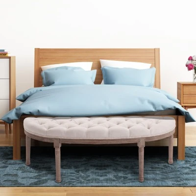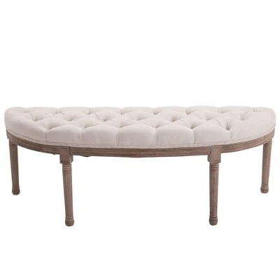 Create an instant focal point for your house with this french inspired semi-circle hallway bench from HOMCOM. Lush velvet-touch cover and classic fluted legs add vintage glamour to your home setting. This foyer bench has a button-tufted seat that enhances support tightness and accents its elegant style.