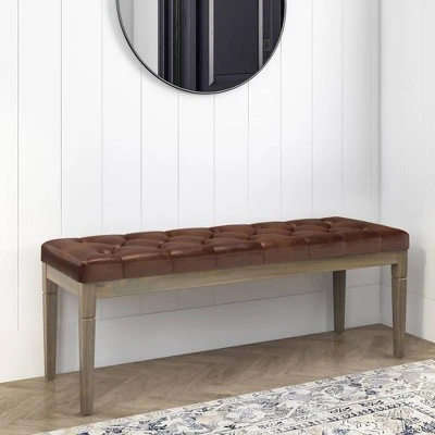 Bring the luxurious French Country feel to your living space with the Hopewell Tufted Ottoman Bench. The tufting adds just the right amount of opulence while the simplicity of the notched legs make it the perfect transitional ottoman suitable for any decor. Made with soft, high quality fabrics for stylish durability. This classic and elegant ottoman will look striking in the entryway, living room or your bedroom.