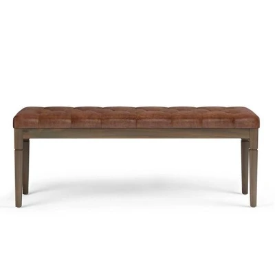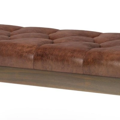 - Upholstered with a durable Distressed Saddle Brown Faux Leather